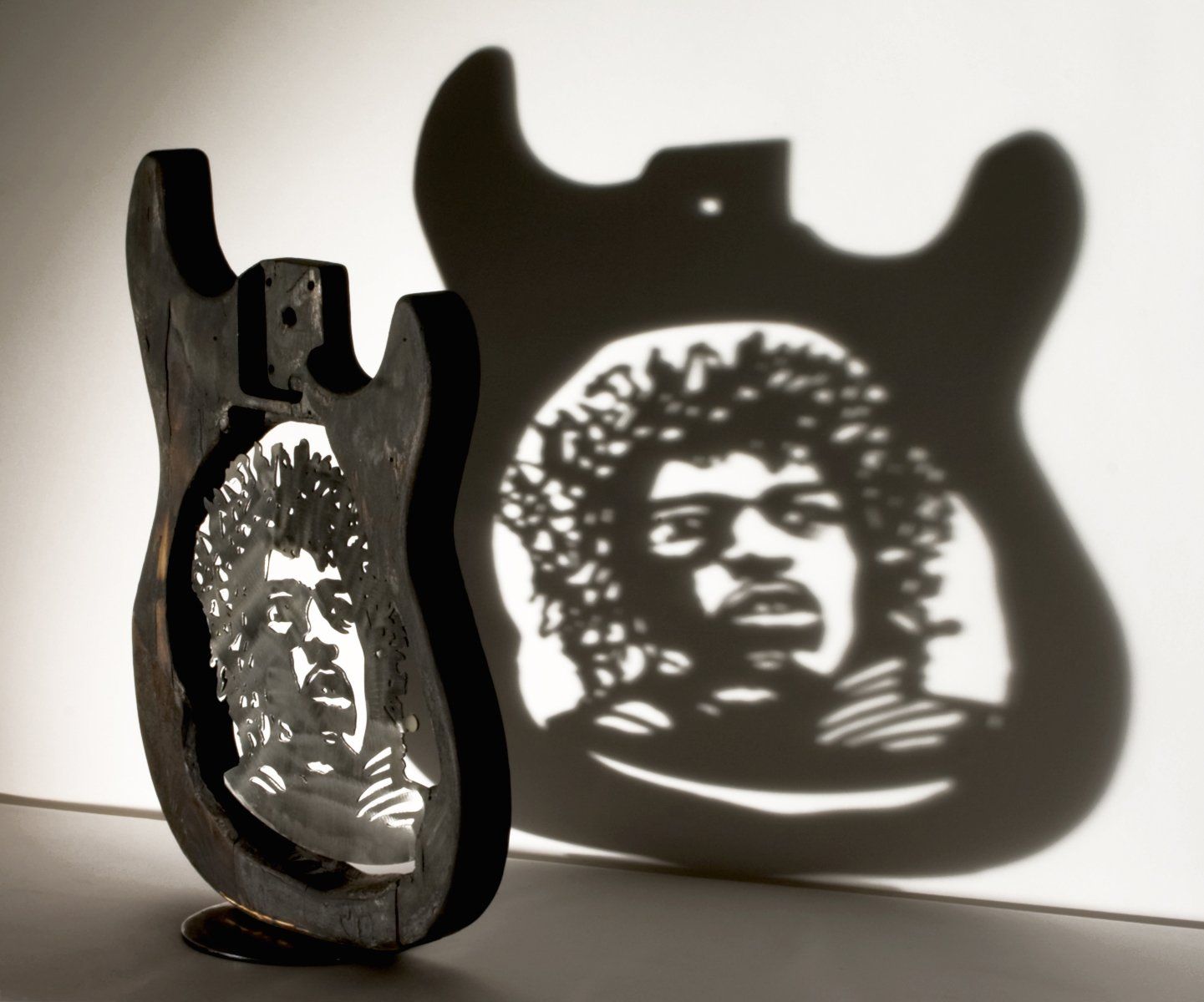 Since then and inspired by the experience, alongside his other art practices he created a series of sculptures depicting some of his favourite rock icons, which often involve movement, projection, light and shadow.