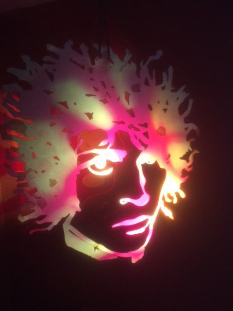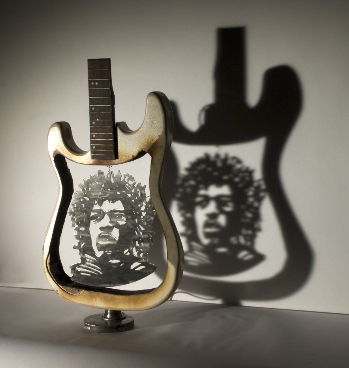 Since then and inspired by the experience, alongside his other art practices he created a series of sculptures depicting some of his favourite rock icons, which often involve movement, projection, light and shadow.