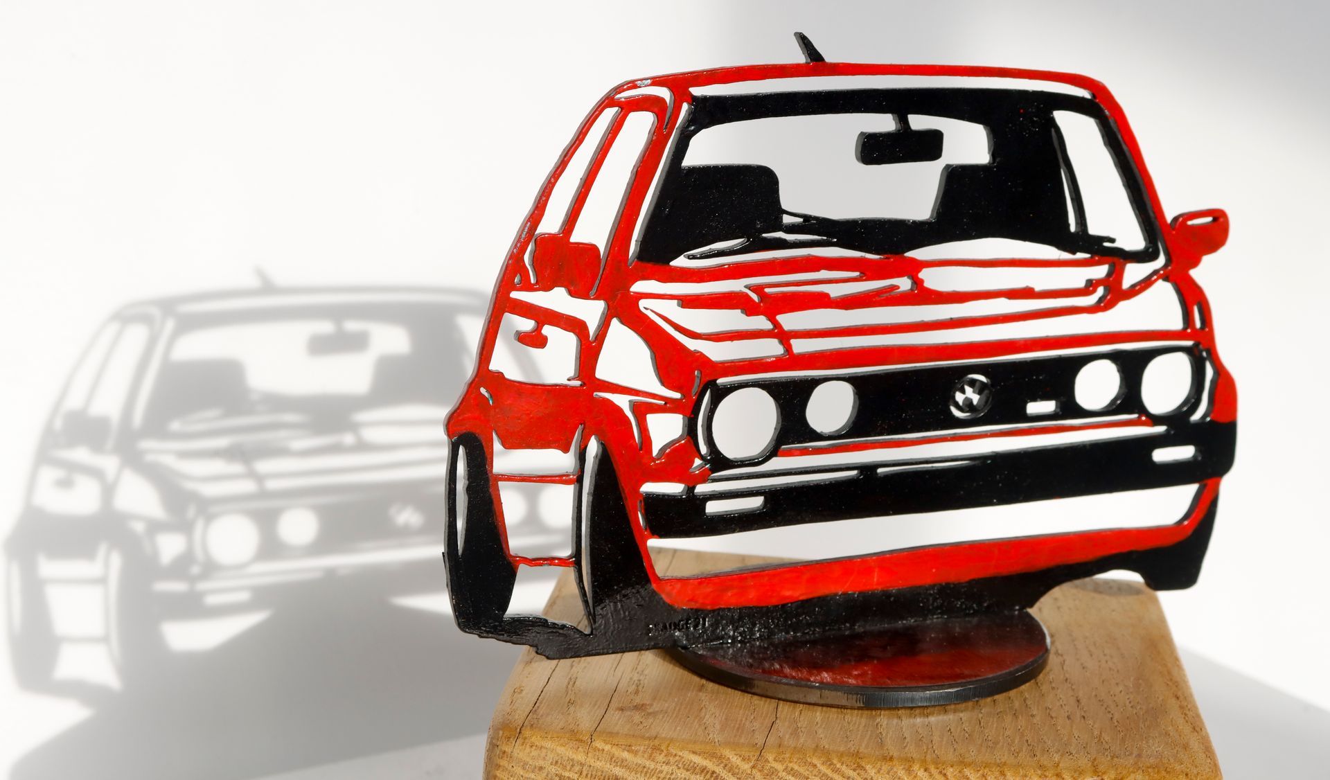 Spadge has been a car nut since childhood so when he developed his technique of laser cutting metal he soon applied it to his automotive interests. early ones included his favourite car, the Ferrari 206 SP as was driven so well at The Goodwood Revival in 2025 and some of his own cars.